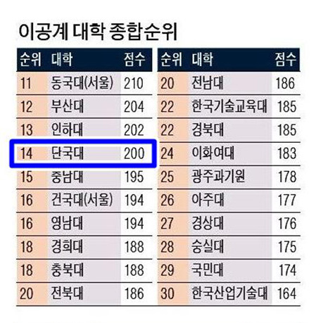 ▶이공계 대학 종합순위에서 14위를 기록한 우리 대학