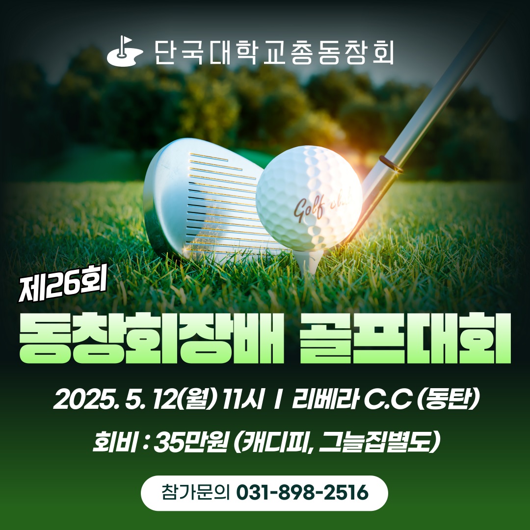 [단국대 총동창회 소식] 다가오는 5월에 단국대 총동창회 골프대회가 있습니다. 혹시 이 시기에 한국 가시는 동문들 계시면 참석하셔서 자리를 빛내주시기 바랍니다~